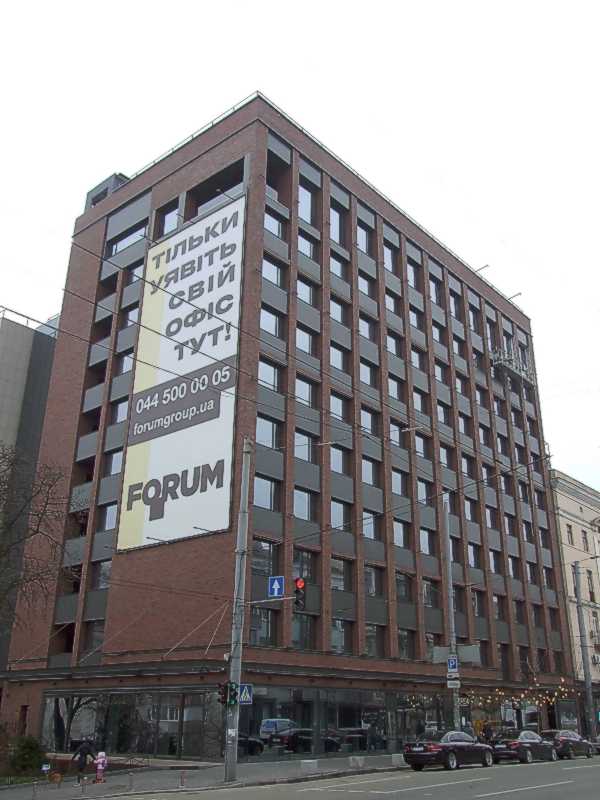 2021 р. Загальний вигляд з північного сходуРозмір зображення: 600:800 піксел Ліворуч – вул. Володимирська, праворуч – вул. Саксаганського. Фото М. І. Жарких, 29 березня 2021 р. |