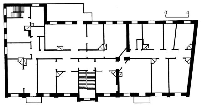 [2003 р.] План другого поверху (№ 74б)Розмір зображення: 645:339 піксел Джерело: Звід пам’яток історії і культури України. – К.: 2003 р., т. 2 (Київ), № 486-55a. |
