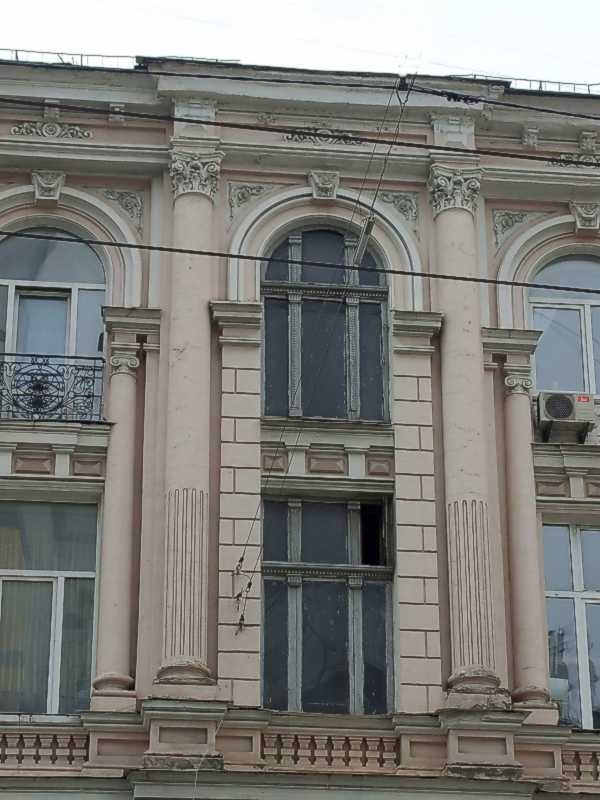 Вікна 3-4-го поверхів сходової клітки Розмір зображення: 600:800 піксел Фото М. І. Жарких, 29 березня 2021 р. Вкладені елементи Вікно 4-го поверху сходової клітки