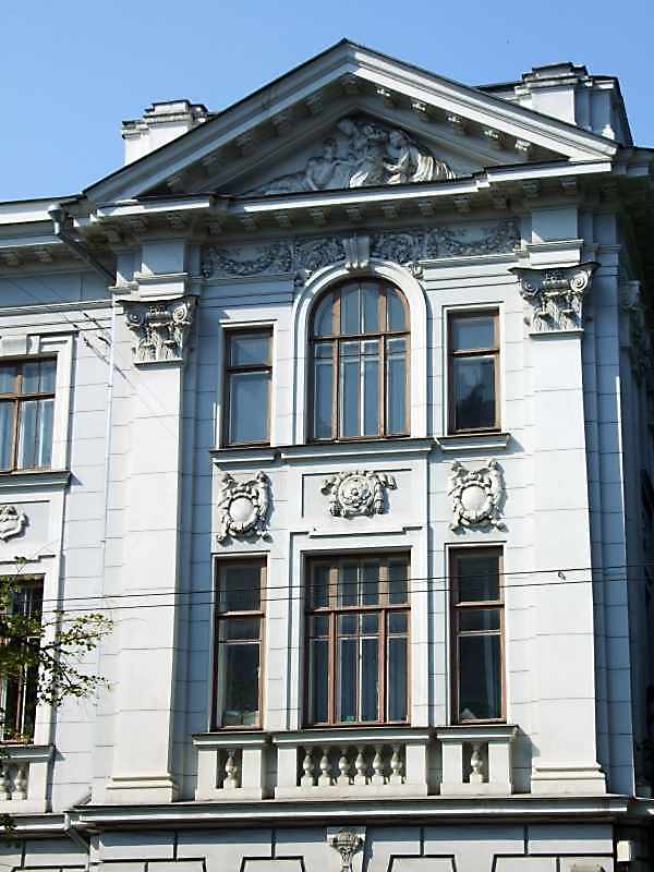 Верхня частина Розмір зображення: 600:800 піксел 2008 р. 12 червня. Фото М.І.Жарких. Вкладені елементи Тимпан фронтону Капітель пілястри Рельєфні вставки