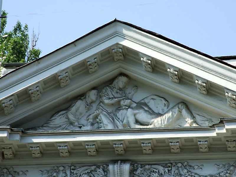 2008 р. Тимпан фронтону лівого ризаліту Розмір зображення: 800:600 піксел 2008 р. 12 червня. Фото М.І.Жарких. Попередня сторінка | Вище | Наступна сторінка