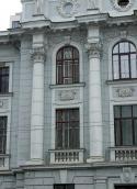 2021 р. Центральна частина головного фасадуРозмір зображення: 800:600 піксел Фото М. І. Жарких, 29 березня 2021 р. |