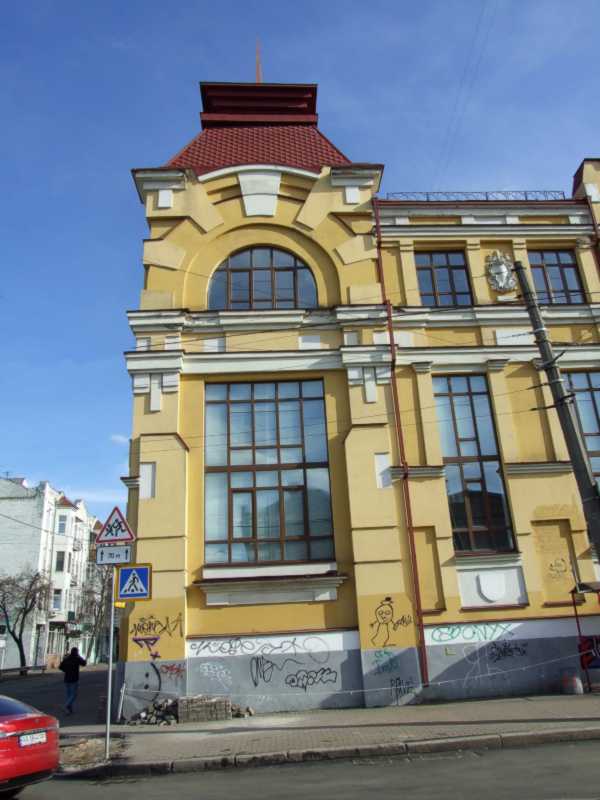 2021 р. Наріжна частина фасаду по вул. ЩекавицькійРозмір зображення: 600:800 піксел Фото М. І. Жарких, 3 квітня 2021 р. |