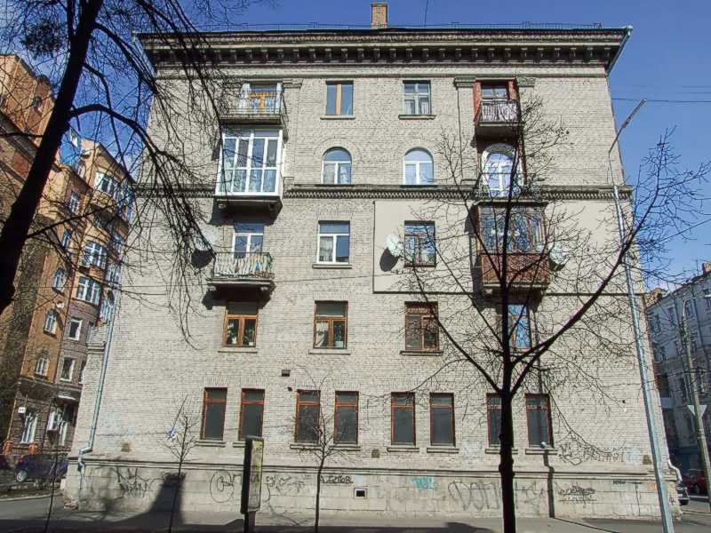 2021 р. Фасад по вул. Волоській Розмір зображення: 800:600 піксел Фото М. І. Жарких, 24 березня 2021 р. Вкладені елементи Антаблемент Гзимс між 3 і 4-м поверхами