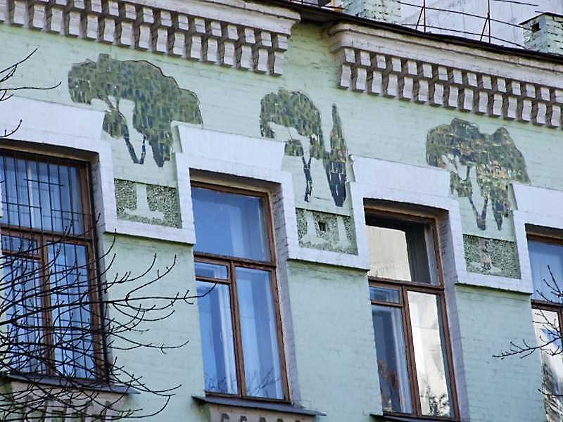 Фрагмент фасаду з розписом Розмір зображення: 800:600 піксел 10 листопада 2008 р. Фото М.І.Жарких. Вище | Наступна сторінка