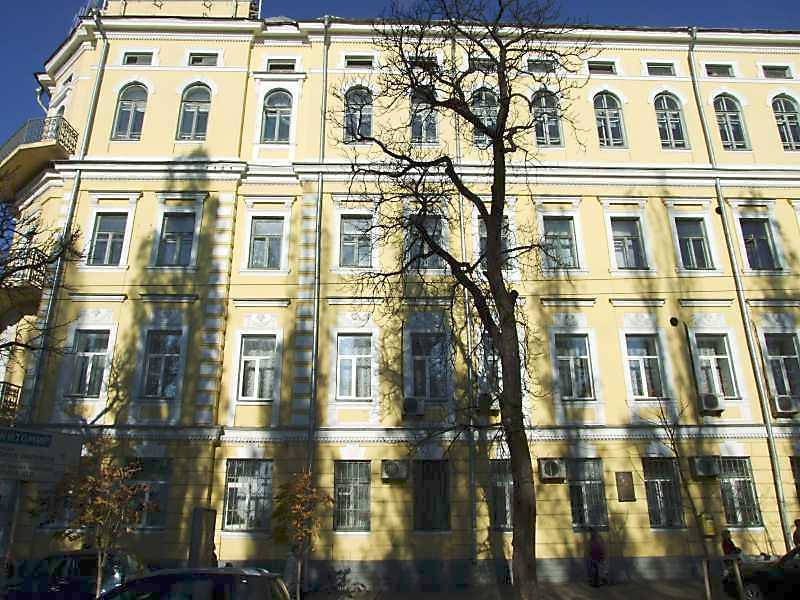 2008 р. Фасад по бульвару Шевченка Розмір зображення: 800:600 піксел 10 листопада 2008 р. Фото М.І.Жарких. Вкладені елементи Вікна 2-го поверху (+) Меморіальна дошка М.Волошину (+)