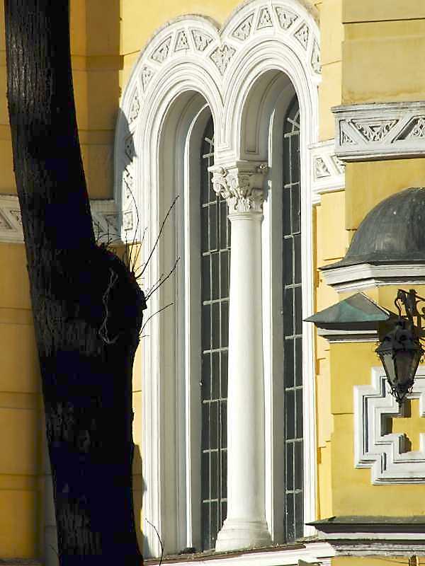Права прясло 1-го ярусу. Вікно-біфорій Розмір зображення: 600:800 піксел 10 листопада 2008 р. Фото М.І.Жарких. Попередня сторінка | Вище | Наступна сторінка