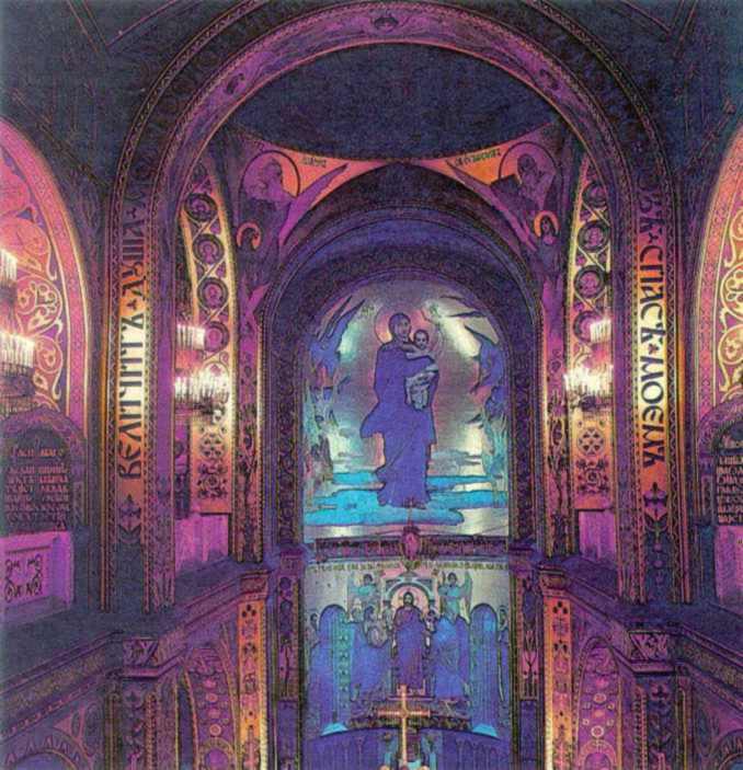 Васнецов В. Богоматір з немовлям. Євхаристія. Розписи центральної апсиди