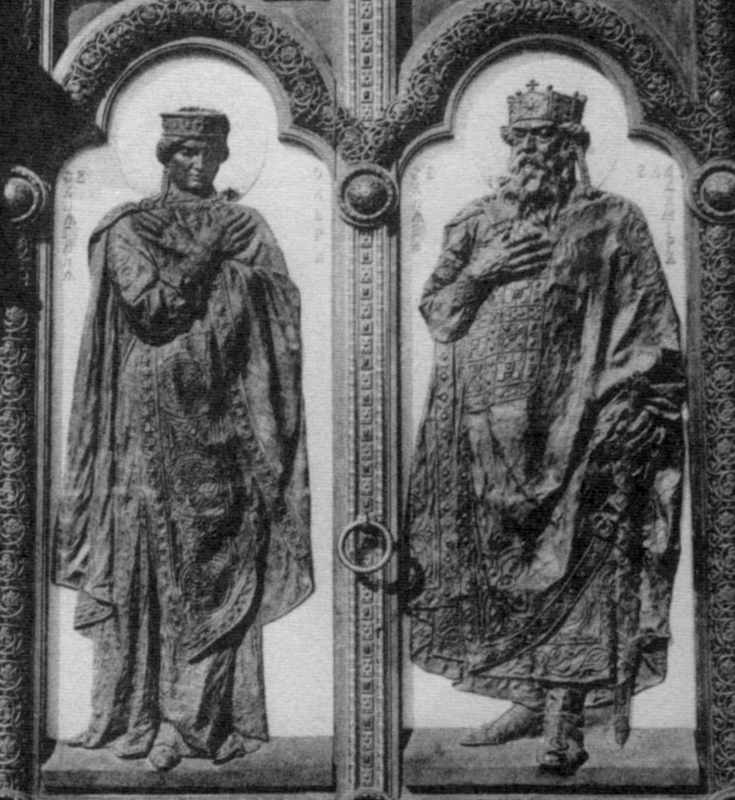 Св.кн.Ольга (скульптор Р.Р.Бах); св.кн.Володимир (скульптор Г.Р.Залеман). За Ескізами А.В.Прахова