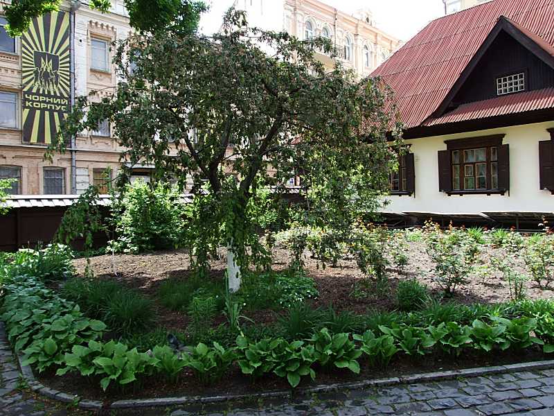 2015 р. Фрагмент садика й будинкуРозмір зображення: 800:600 піксел Вигляд з північного сходу. Фото М. І. Жарких, 15 травня 2015 р. |