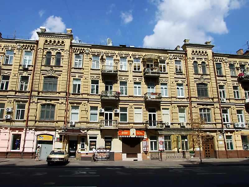 Житловий будинок (№ 12) Розмір зображення: 800:600 піксел Вкладені елементи 2003 р. Звід пам’яток Києва (+) 2007 р. Загальний вигляд зі сходу 2007 р. Фрагмент головного фасаду (+) 2007 р. Головний фасад 2007 р. Загальний вигляд з півдня