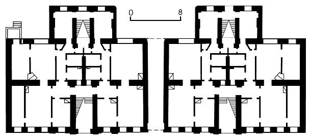 [2003 р.] Первісний план першого поверхуРозмір зображення: 610:270 піксел Джерело: Звід пам’яток історії і культури України. – К.: 2003 р., т. 2 (Київ), № 467-02a. |