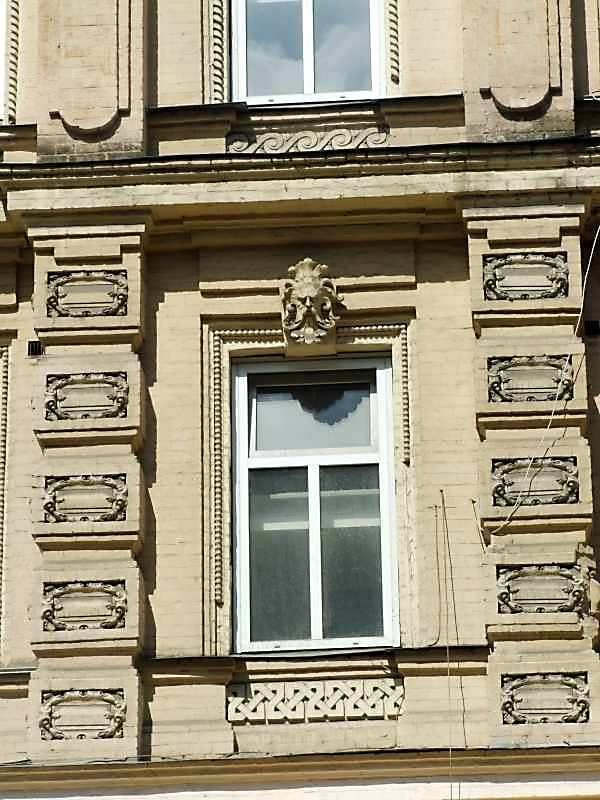Вікно 2-го поверху Розмір зображення: 600:800 піксел 26 серпня 2007 р. Фото М.І.Жарких. Вкладені елементи Маскарон вікна 2-го поверху