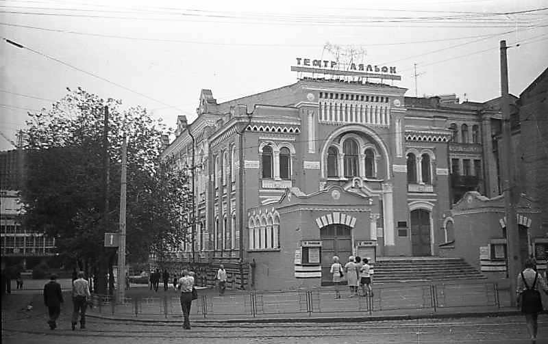 1975 р. Загальний виглядРозмір зображення: 800:503 піксел Ліворуч – вул.Рогнідинська, праворуч – вул. Шота Руставелі. 1975 р. 5 вересня. Фото М.І.Жарких. Негатека, № A064-12. |