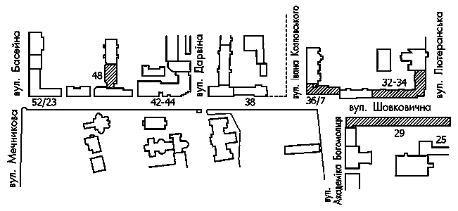 План кінця вулиціРозмір зображення: 651:300 піксел Джерело: Звід пам’яток історії і культури України. – К.: 2011 р., т. 3 (Київ), № 571-1. |