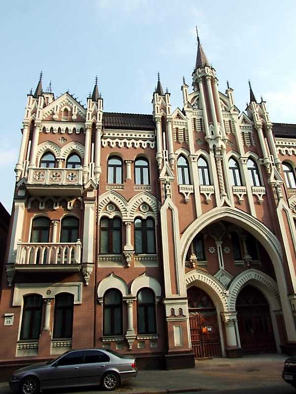2009 р. Ліва частина головного фасаду Розмір зображення: 600:800 піксел 6 квітня 2009 р. Фото М.І.Жарких. Вкладені елементи 2-3-й поверхи (+) Вікна 3-го поверху (+) Вікна 2-го поверху (+) Вікна 1-го поверху
