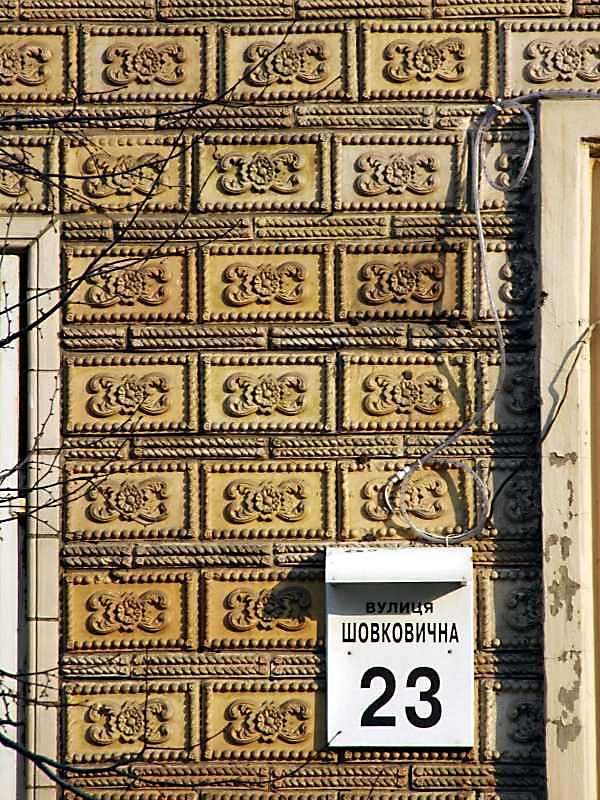 2009 р. Фрагмент фасаду з декоративної плиткиРозмір зображення: 600:800 піксел 6 квітня 2009 р. Фото М.І.Жарких. |