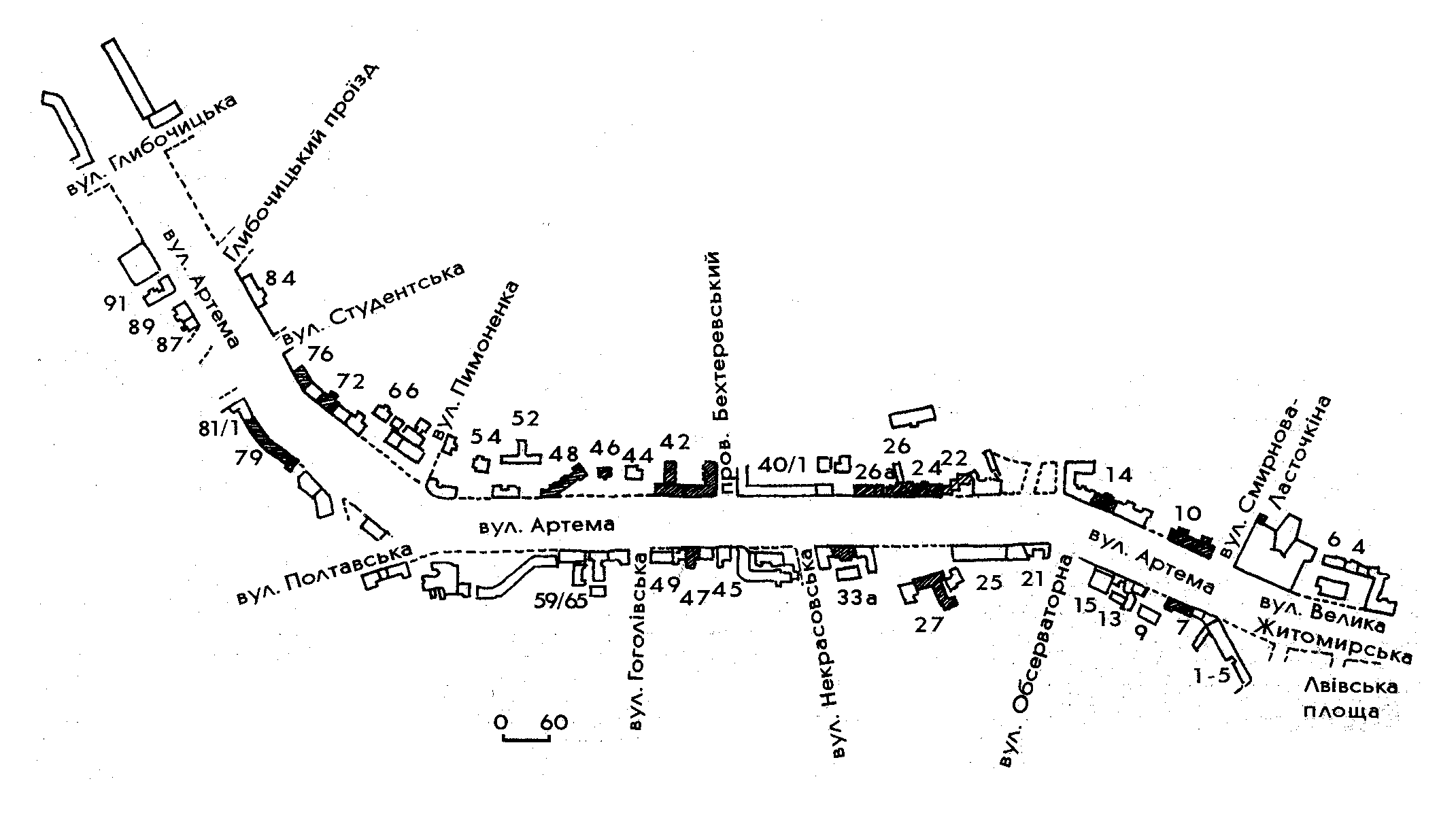 Важливою умовою подальшої реконструкції та розширення вулиці було виникнення Петрівсько-Куренівського промислового району, розвиток житлового району Лук’янівки, включення її до складу загальноміської магістралі, що з’єднувала північні райони з центром міста – Радянською (тепер Майдан Незалежності) і Урядовою (нині Михайлівська) площами (генплан 1936). Реконструкція зі знесенням будинків і влаштуванням на їхньому місці розкритих озеленених просторів торкнулася незначних ділянок вулиці. Збережено цінні архітектурні споруди 19 – поч. 20 ст., вирішені в стилях еклектизму й модерн (№ 7, 14, 22, 24, 33, 40/1, 42, 46, 47, 72). Поєднання цих будівель з архітектурними пам’ятками періоду конструктивізму й неокласицизму 1930 – 50-х рр. (№ 26-а, 48, 76, 79), новітніми спорудами (Будинок побуту, № 15, Республіканський будинок моделей, № 37 – 41, Республіканське управління зеленого будівництва, № 51, висотний адміністративний будинок, № 73, Держпроектінститут «Південнафтопровід», № 64, кінотеатр «Київська Русь», № 93), а також скверами й парками надають вулиці рис своєрідності.