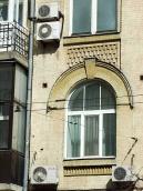 Житловий будинок (№ 12) Розмір зображення: 666:800 піксел Фото М. І. Жарких, 15 березня 2020 р. Вкладені елементи Вікна 5-6-го поверхів (+) Вікно 2-го поверху Вхід 2020 р. Загальний вигляд з південного заходу