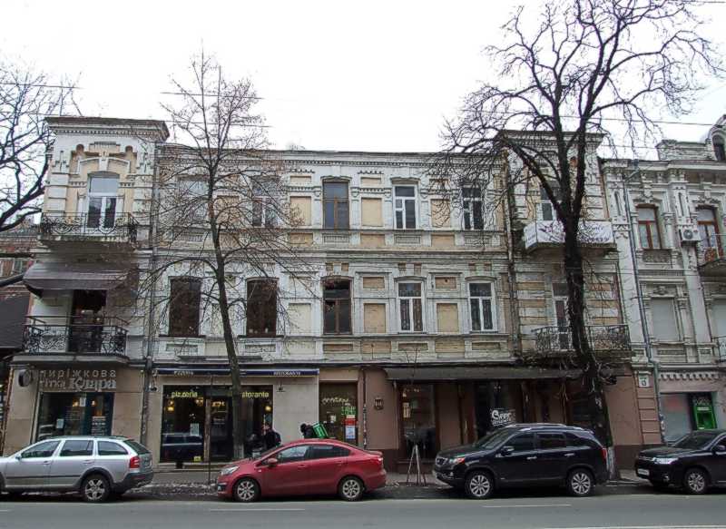 2021 р. Головний фасад Розмір зображення: 800:583 піксел Фото М. І. Жарких, 17 березня 2021 р. Вкладені елементи Балкон 3-го поверху