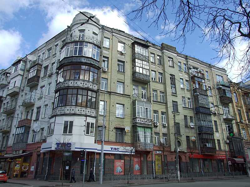 Житловий будинок (№ 14а)Розмір зображення: 800:600 піксел Ліворуч – вул. Кудрявська, праворуч – вул. Січових стрільців. Фото М. І. Жарких, 15 березня 2020 р. |