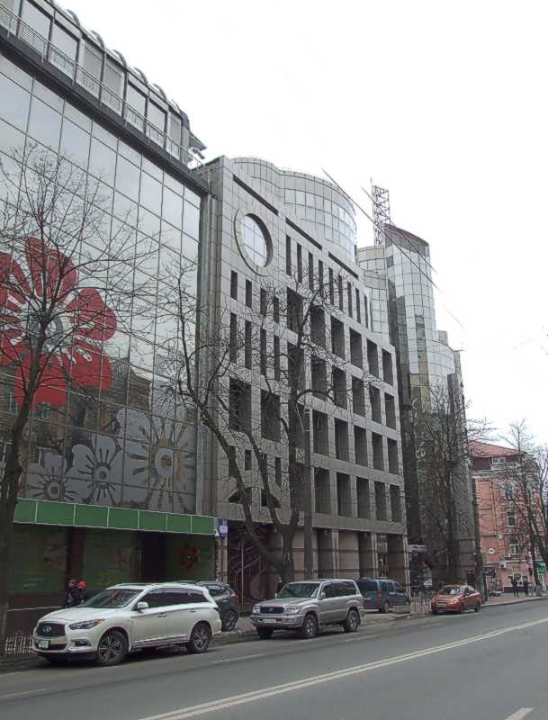 2021 р. Права частина фасаду у перспективів вул. Січових стрільцівРозмір зображення: 609:800 піксел Фото М. І. Жарких, 17 березня 2021 р. |