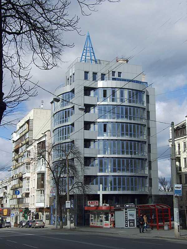 Офісний будинок (№ 68а) Розмір зображення: 600:800 піксел Фото М. І. Жарких, 15 березня 2020 р. Вкладені елементи 2020 р. Загальний вигляд з південного сходу
