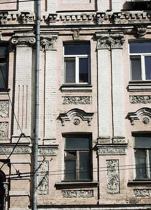 Вікна 3-4-го поверхів Розмір зображення: 578:800 піксел Фото М. І. Жарких, 15 березня 2020 р. Вкладені елементи Вікно 3-го поверху і рельєф