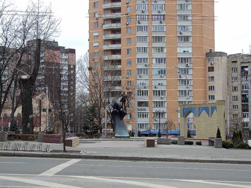 На тлі будинку по вул. Чорновола, 2. Фото М. І. Жарких, 17 березня 2021 р.