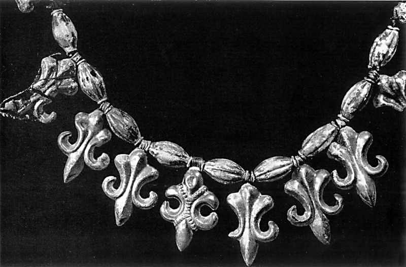Ожерелье с дутыми бусинами и подвесками в виде кринов из клада, найденного в 1901 году в Киеве около Трехсвятительской церкви.