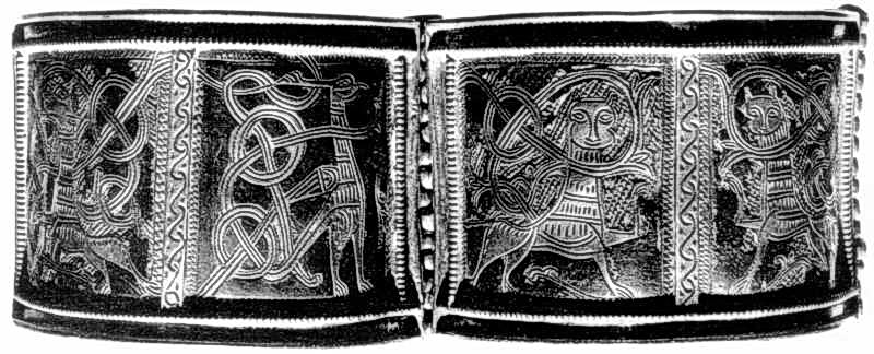Пластинчастий браслетРозмір зображення: 800:324 піксел Срібний пластинчастий браслет з Києва. XII – XIII ст. Державний історичний музей УРСР. Джерело: Історія українського мистецтва. – К.: Наукова думка, 1966 р., т. 1, с. 366. |