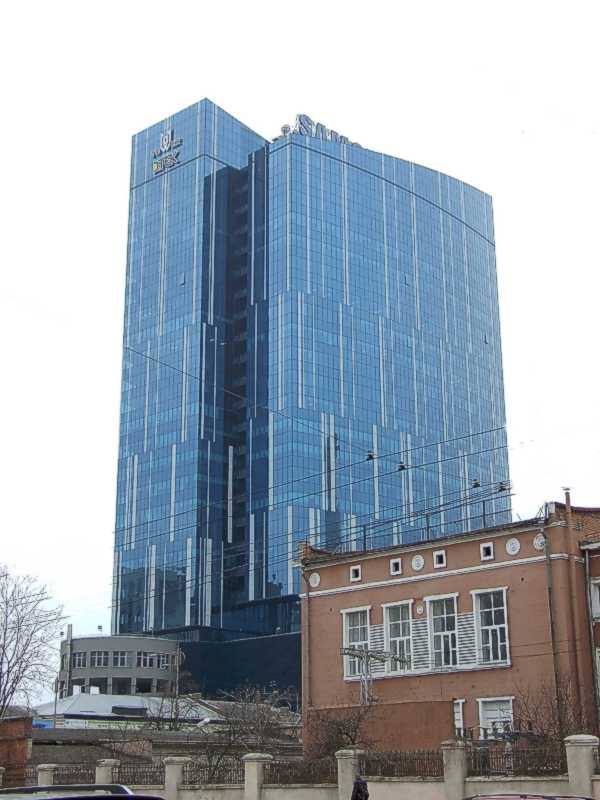 Бізнес-центр «101Tower » (№ 57)Розмір зображення: 600:800 піксел Вигляд з півночі, з боку вул. Л. Толстого. Фото М. І. Жарких, 31 березня 2021 р. |