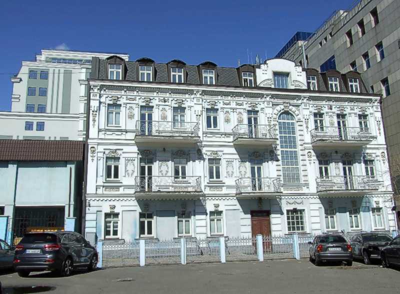 2021 р. Головний фасад Розмір зображення: 800:589 піксел Фото М. І. Жарких, 23 березня 2021 р. Вкладені елементи Фронтон Вікно 3-го поверху Вікно сходової клітки Вікно 2-го поверху Рельєфні панелі 2-го поверху Рельєф на пілястрі (2-й поверх) Вікно 1-го поверху