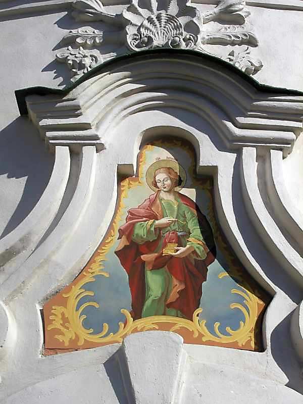 Св.Пантелеймон. Розпис ніші над південним входомРозмір зображення: 600:800 піксел 31 серпня 2005 р. Фото М.І.Жарких. |
