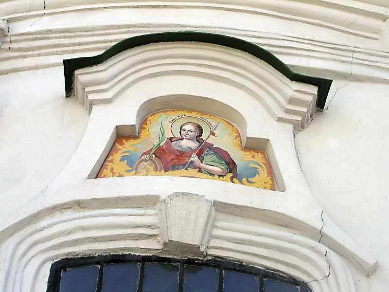 Св.Юрій Переможець. Розпис ніші над західним вікном північної конхиРозмір зображення: 800:600 піксел 31 серпня 2005 р. Фото М.І.Жарких. |