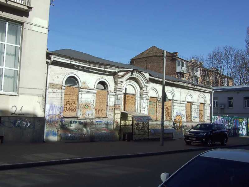 Флігель (№ 1) Розмір зображення: 800:600 піксел Вигляд з півдня. Фото М. І. Жарких, 23 березня 2021 р. Вкладені елементи 2011 р. Звід пам’яток Києва (+) 2021 р. Загальний вигляд з південного сходу