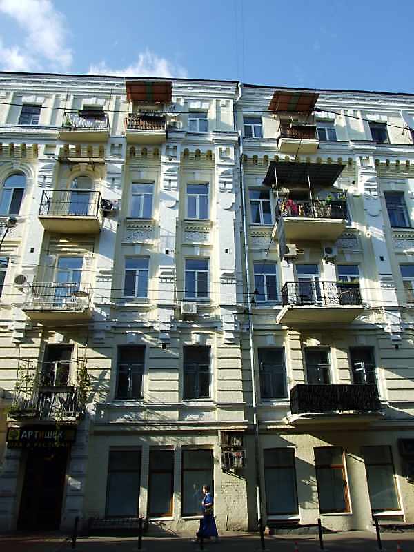 Будинок (№ 4 / Мала Житомирська, 3) Розмір зображення: 600:800 піксел Вкладені елементи 2008 р. Загальний вигляд з боку вул.Софійської 2008 р. Центральна частина фасаду по вул.Софійській