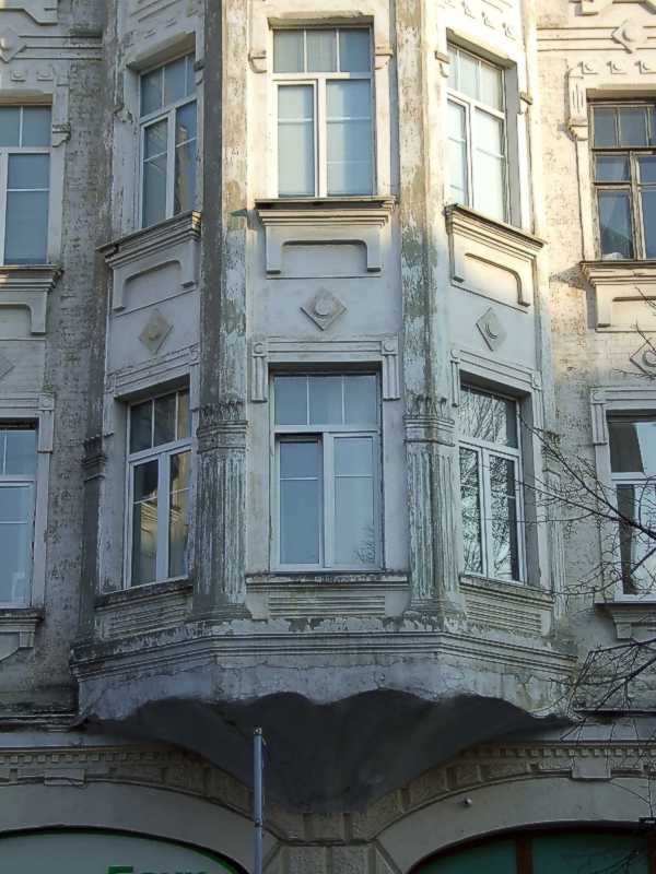 Сецесійний еркер (2 – 3-й поверхи) Розмір зображення: 600:800 піксел Фото М. І. Жарких, 27 березня 2021 р. Вкладені елементи 3-й поверх еркера Сецесійна консоль еркера