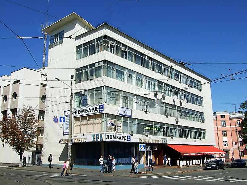 Будинок побуту (№ 9а)Розмір зображення: 800:600 піксел Ліворуч – вул. Межигірська, праворуч – вул. Спаська. 9 вересня 2007 р. Фото М.І.Жарких. |