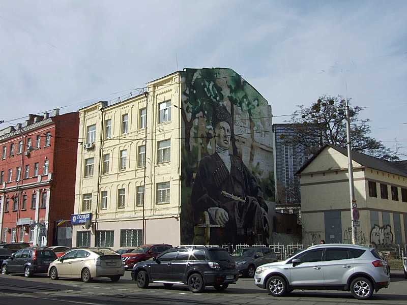 На брандмауері – портрет гетьмана Павла Скоропадського.