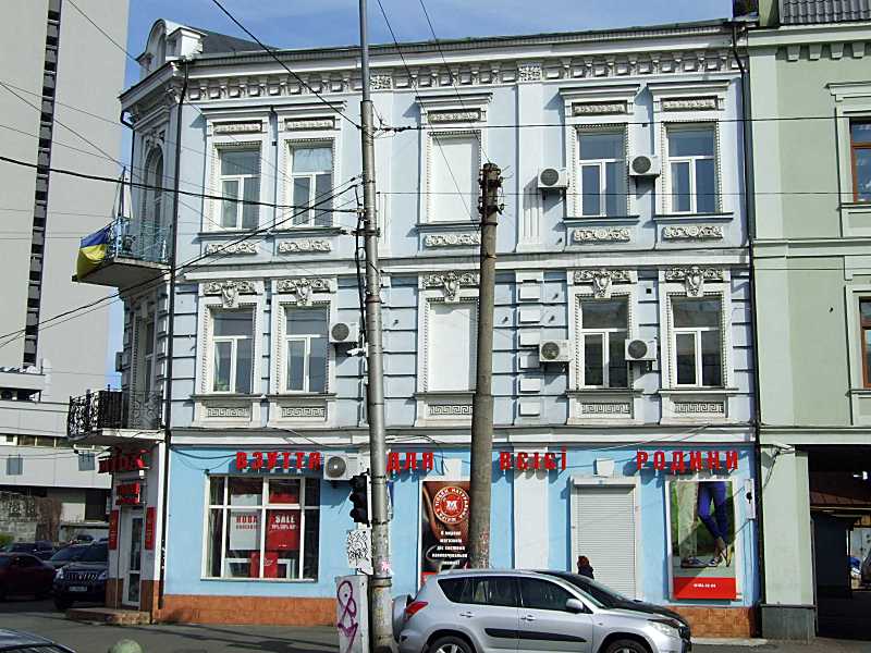 2020 р. Фасад по вул. Жилянській Розмір зображення: 800:600 піксел Фото М. І. Жарких, 13 березня 2020 р. Вкладені елементи Вікна 2-го поверху