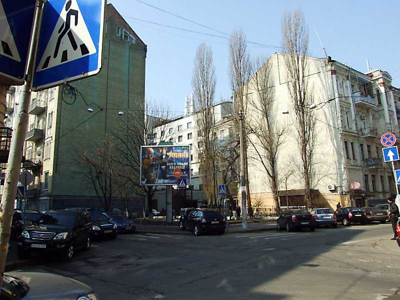 Місце будинку по вул. Стрілецькій, 26. Ліворуч – брандмауер будинку по Стрілецькій, 28; в центрі – корпус будинку по Ярославовому Валу, 22-24; праворуч – брандмауер будинку по Рейтарській, 25. 19 березня 2012 р. Фото М.І.Жарких.
