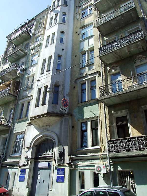 Житловий будинок з історією (№ 28) Розмір зображення: 600:800 піксел Вкладені елементи 2011 р. Звід пам’яток Києва (+) 2012 р. Загальний вигляд від вул. Рейтарської 2009 р. Загальний вигляд у перспективі вулиці 2009 р. Центральна частина головного фасаду (+) 2009 р. Загальний вигляд з півдня