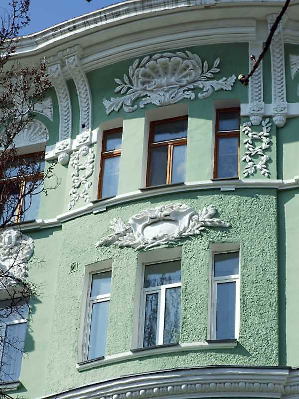 6-7-й поверхи Розмір зображення: 600:800 піксел 7 квітня 2009 р. Фото М.І.Жарких. Вкладені елементи Рельєфна мушля (+) Рельєфний картуш (+)