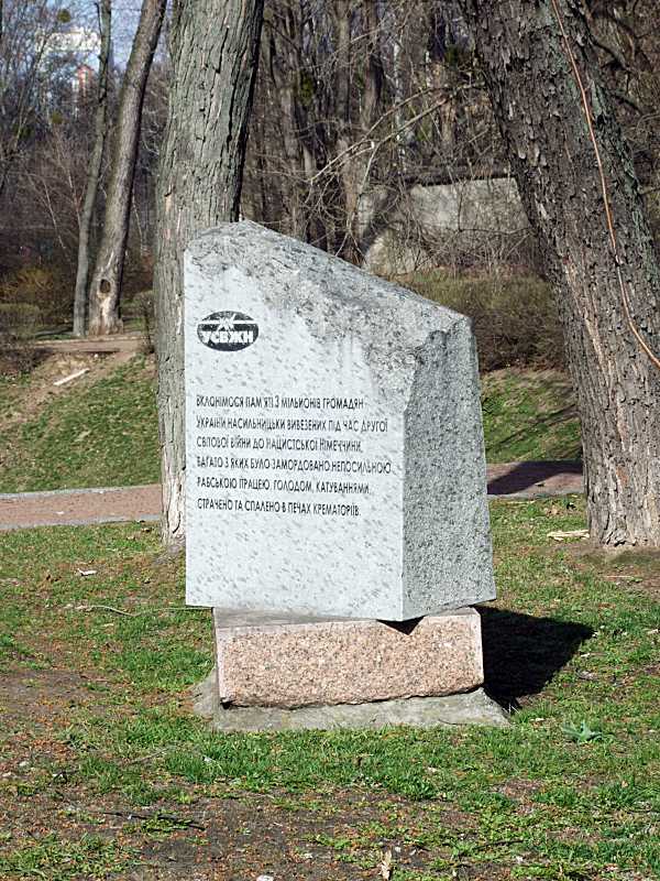 Вклонімося пам’яті 3 мільйонів громадян України, насильницьки вивезених під час другої світової війни до нацистської Німеччини, багато з яких було замордовано непосильною рабською працею, голодом, катуванням, страчено та спалено в печах крематоріїв».