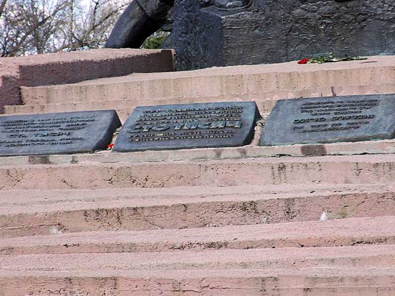 Плити з написами Розмір зображення: 800:600 піксел Фото М. І. Жарких, 15 березня 2020 р. Вкладені елементи Напис російською мовою Напис українською мовою Напис на івриті