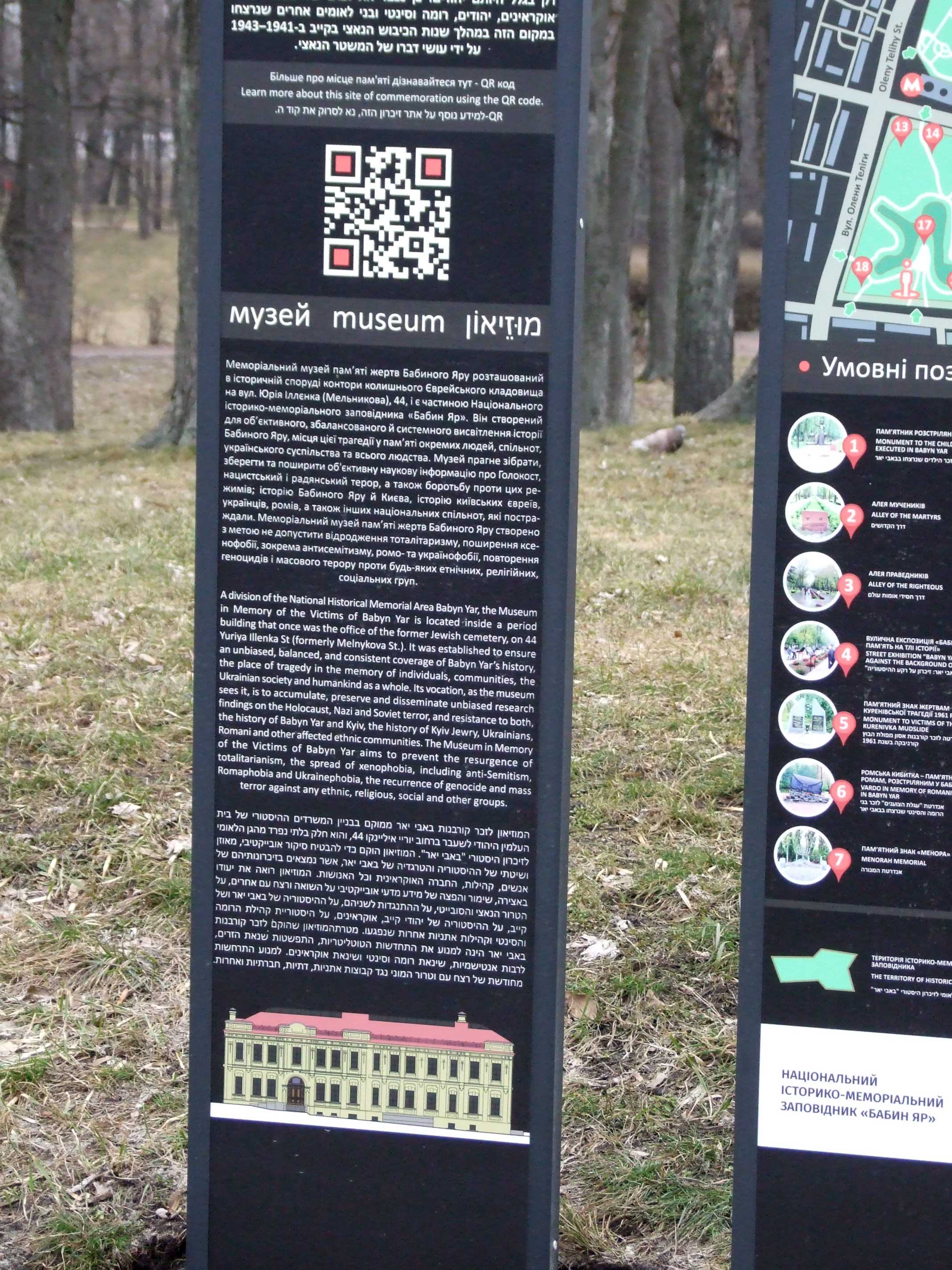 Про меморіальний музейРозмір зображення: 2136:2848 піксел Фото М. І. Жарких, 18 березня 2021 р. Українською, агнлійською та івритом. Легко читається! |
