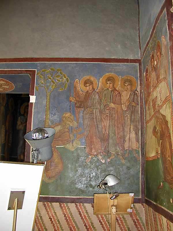 2005 р. Явління трьох ангелів Аврааму. Розпис західної стіни князівської каплиціРозмір зображення: 600:800 піксел 13 квітня 2005 р. Фото М.І.Жарких. |