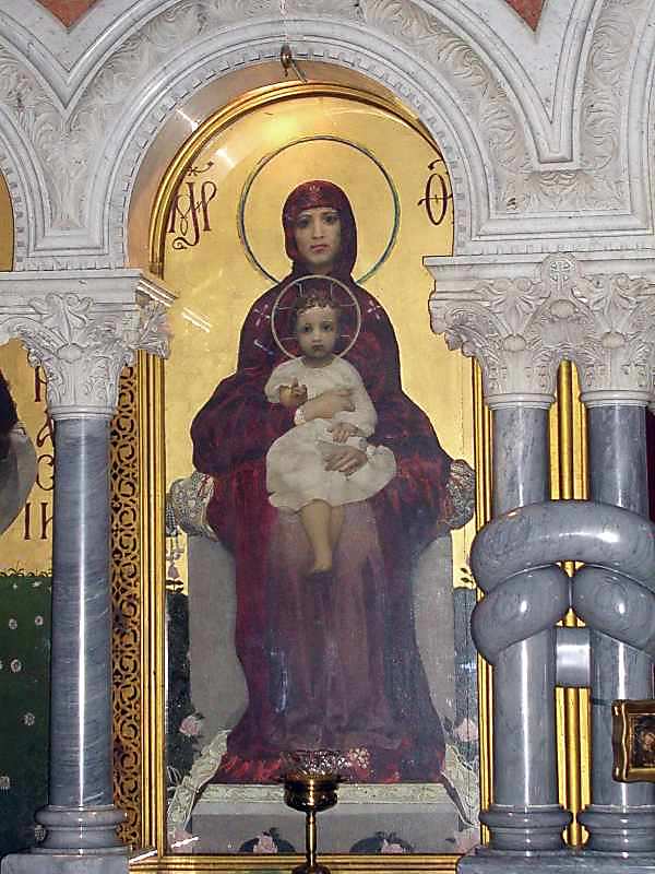 Богородиця Одигітрія Розмір зображення: 600:800 піксел 15 листопада 2005 р. Фото М.І.Жарких. Вкладені елементи 1976 р. Загальний вигляд Півпостать