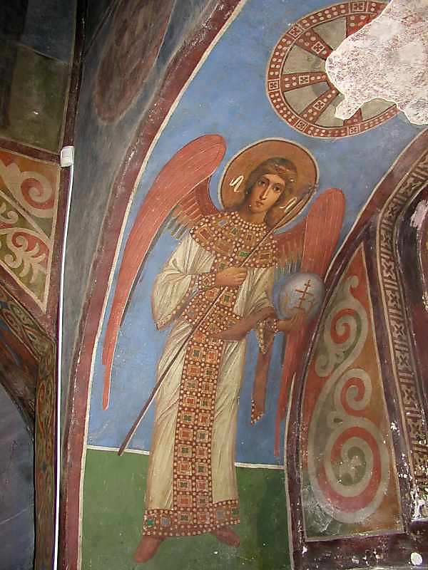 2006 р. Ангел на лівому відкосі південного аркосолію в західній стіні нартексу.Розмір зображення: 600:800 піксел 9 лютого 2006 р. Фото М.І.Жарких. |